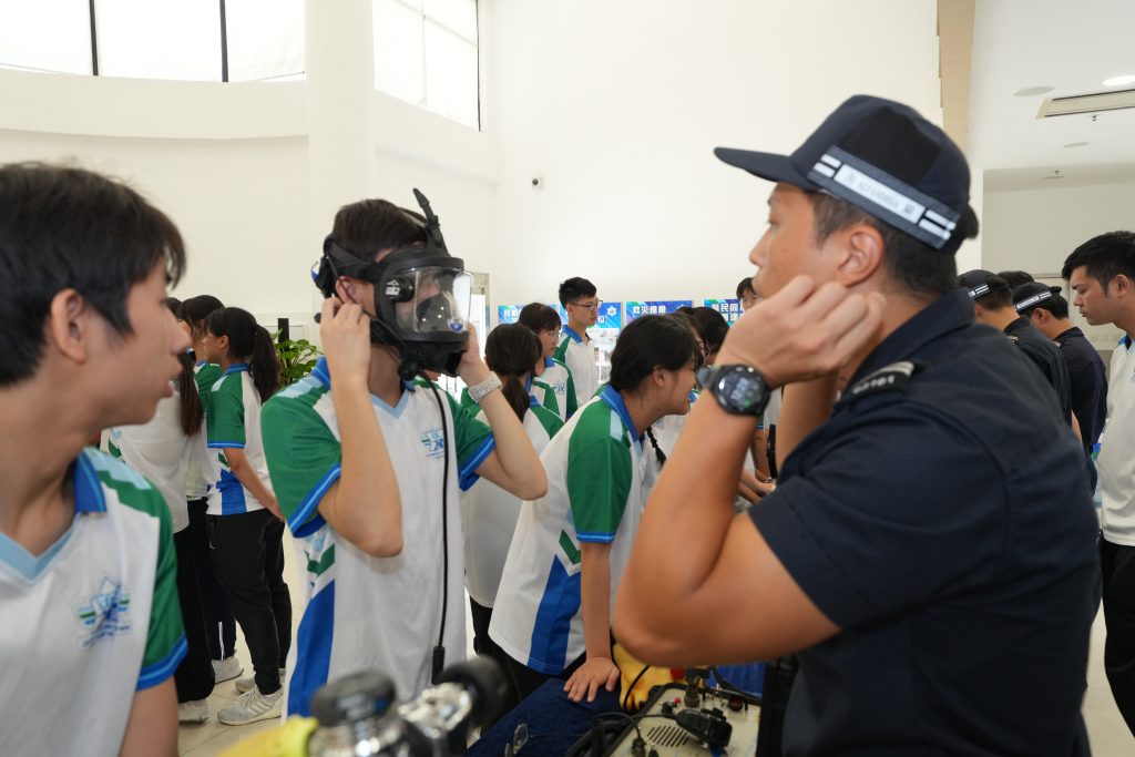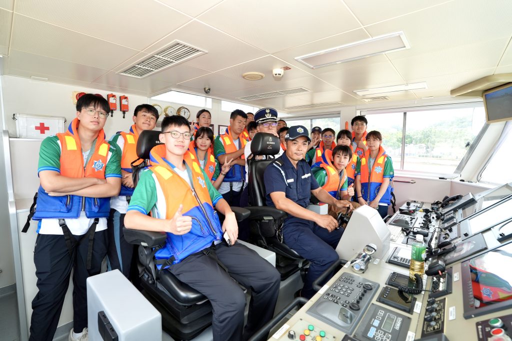 Sessão para conhecer o equipamento operacional e de socorro dos SA, com o embarque na Lancha de fiscalização, os formandos experienciaram o trabalho de patrulha marítima e compreenderam melhor a situação da área marítima sob jurisdição de Macau.