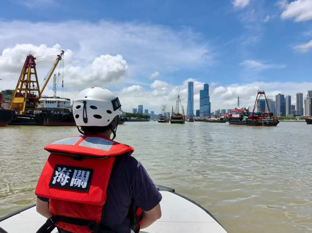 海關於澳門水道臨時管控期間開啟指揮中心,透過監控系統及通訊設備,對澳門水道進行實時監察,協同海事及水務局為漁船保駕護航。