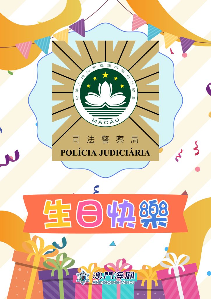 comemorativo da PJ, os Serviços de Alfândega de Macau desejam um feliz aniversário