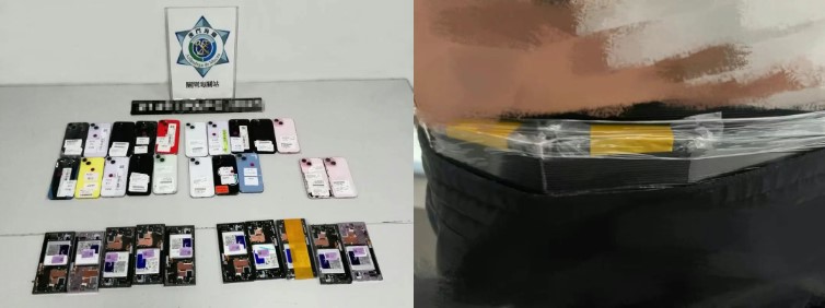 于8月21日,海关人员在关闸口岸出境旅客检查区发现一名男子腰部鼓胀,怀疑藏有未申报物品。经检查,发现其将30部旧手提电话缠于腰部,试图偷运出境;同日在关闸口岸入境车道发现一辆跨境货车载有208公斤未经检疫水果,违反相关规定,一名女子及一名男子涉案。