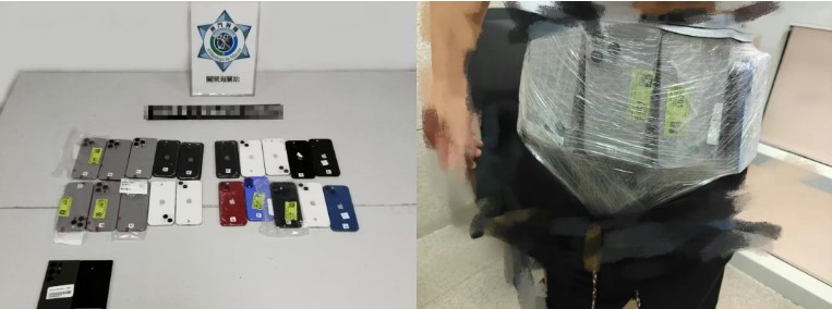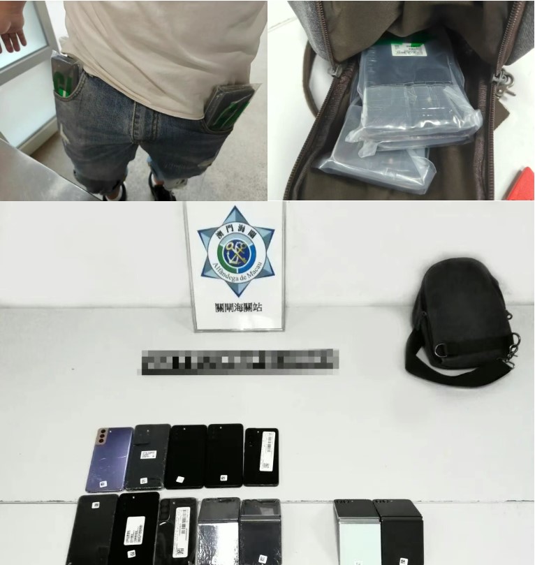 於8月29日,海關人員在關閘口岸出境旅客檢查區發現一名男子步態異常,懷疑藏有未申報物品。經檢查,發現其將12部舊手提電話藏於褲袋及隨身物品內,試圖偷運出境。