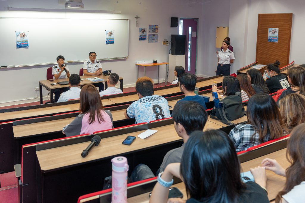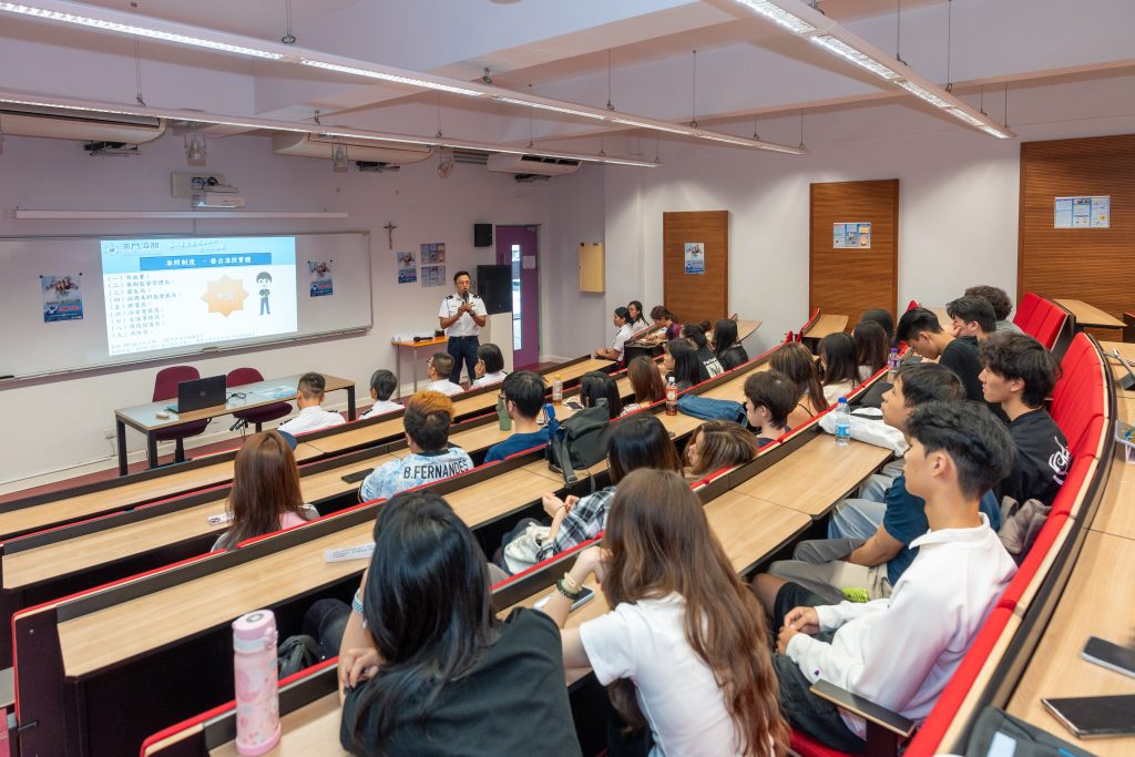 為提升本澳學生的防罪守法意識,澳門海關持續走進校園開展宣教普法講座,並與各學校保持密切溝通和良好互動。其中,9月10日,海關到澳門聖若瑟大學舉辦了一場宣教普法專題講座,旨在引導學生建立正確的價值觀,增強法治觀念,共有42名學生參與。
