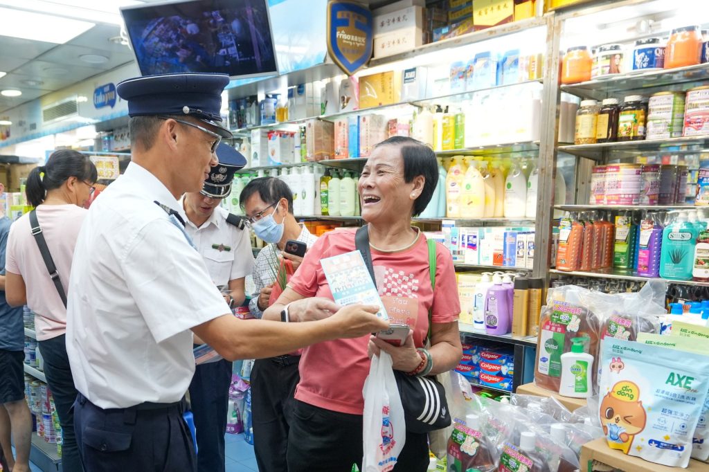 海關人員向商戶宣傳防風防水浸等應急避險措施
