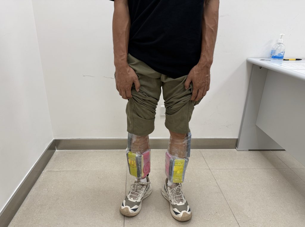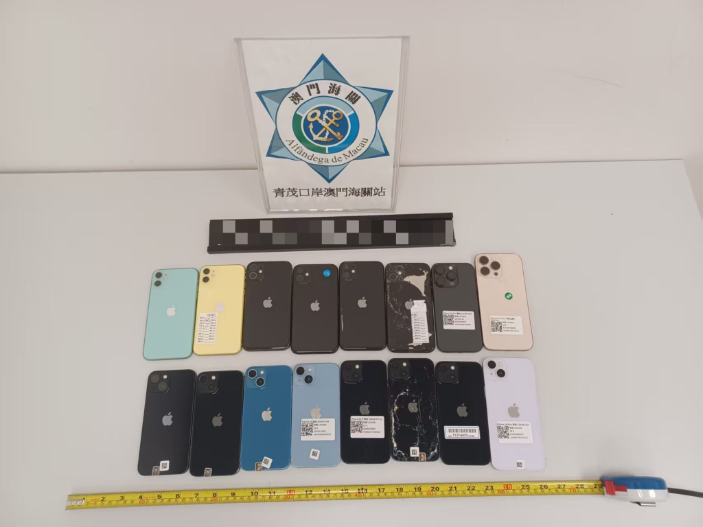 於9月13日,海關人員在青茂口岸出境旅客檢查區發現一名男性內地居民,其步態僵硬,懷疑藏有未申報物品。經檢查,發現上述人士將合共16部舊手提電話纏於小腿,試圖偷運出境。