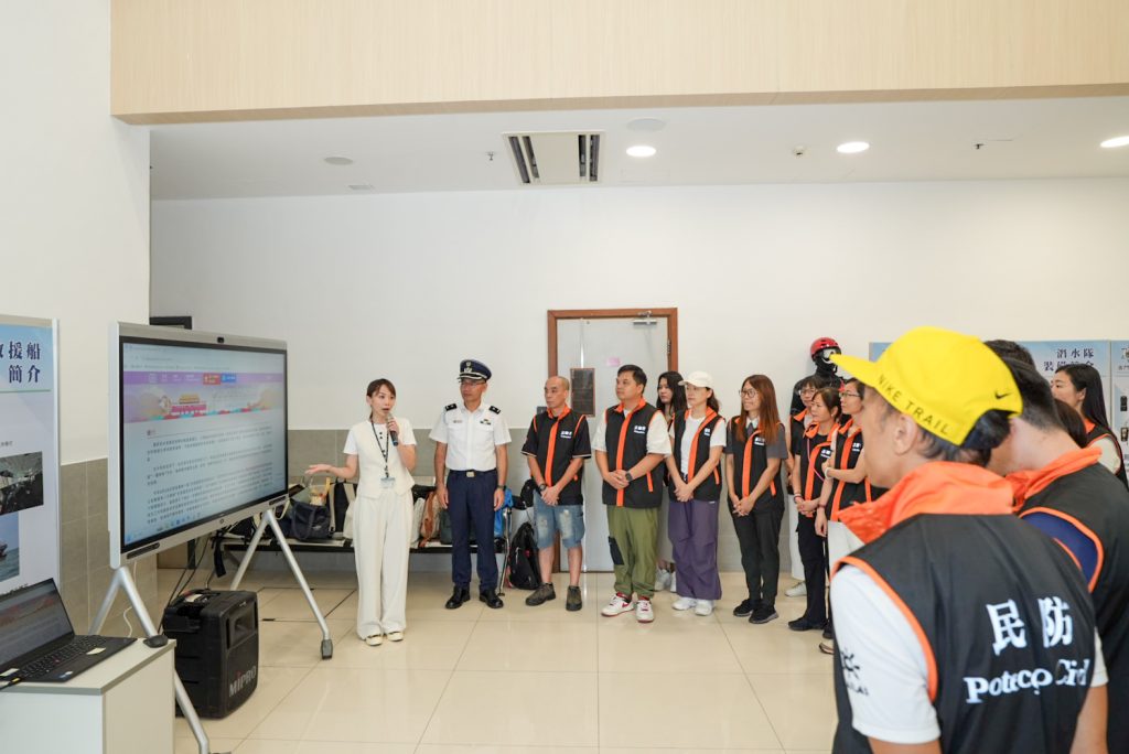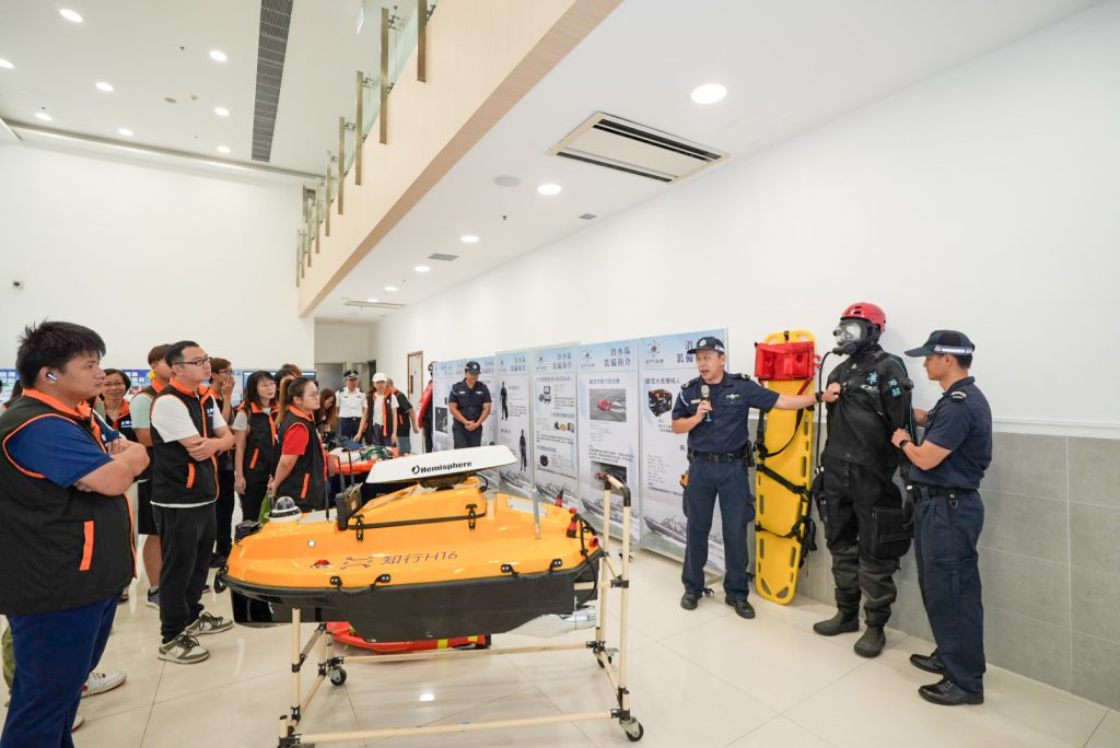 Posteriormente, o pessoal da equipa de mergulhadores explicou aos visitantes o equipamento comummente utilizado no serviço marítimo e no resgate, incluindo equipamentos de comunicação e mergulho, motos de água e e botes de borracha, entre outros, e permitiu o contacto próximo, aprofundando o conhecimento dos visitantes sobre o trabalho de resgate marítimo.