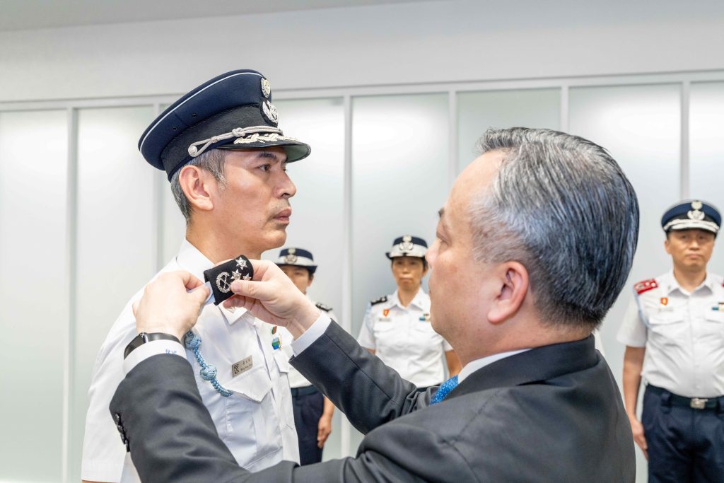 最后,何关长寄望两名获晋升的关务官凭借其专业知识及工作经验,尽职尽责,带领团队无畏挑战、攻坚克难,切实做好海关范畴的工作,竭诚为市民福祉、社会安定和经济发展贡献力量。