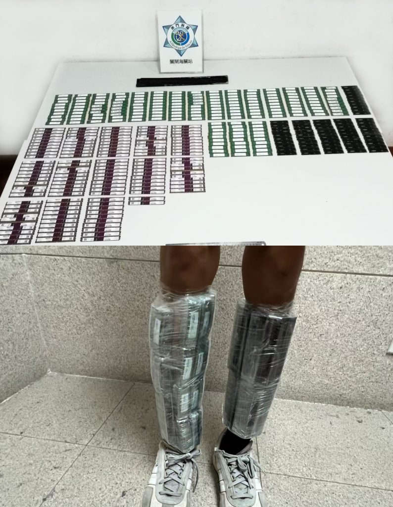 No dia 30 de Setembro, o pessoal dos SA, na área de inspecção de passageiros a sair do Posto Fronteiriço das Portas do Cerco, detectou um residente de Macau, do sexo masculino, com uma marcha anormal. Após inspecção, foi descoberto que o homem tinha 372 artigos (produtos electrónicos usados) amarrados às suas pernas, tentando contrabandeá-los para fora do território.