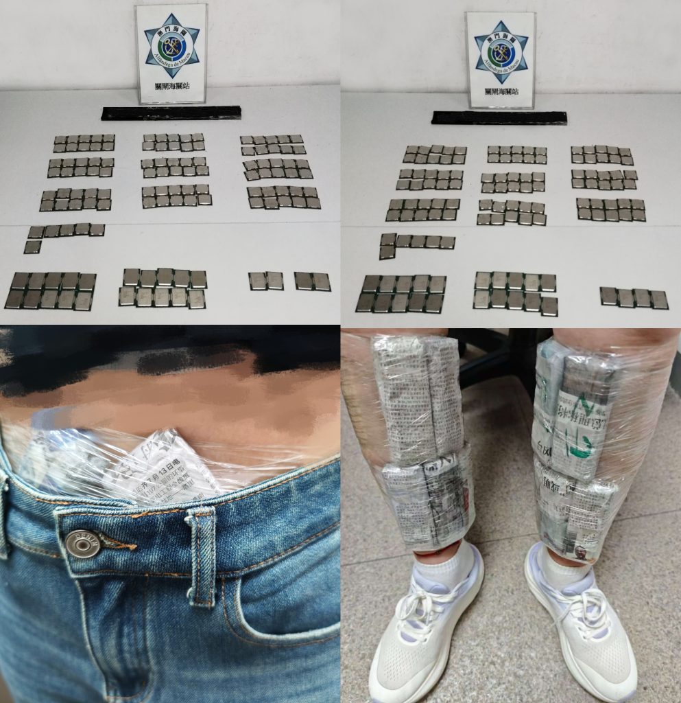No dia 9 de Outubro, o pessoal dos SA, na área de inspecção de passageiros a sair do Posto Fronteiriço das Portas do Cerco, detectou um residente do Interior da China, do sexo masculino, com a cintura anormalmente volumosa. Após inspecção, foi descoberto que o homem tinha 34 artigos (produtos electrónicos usados) amarrados em várias partes do corpo, tentando contrabandeá-los para fora do território.