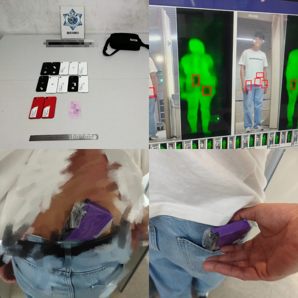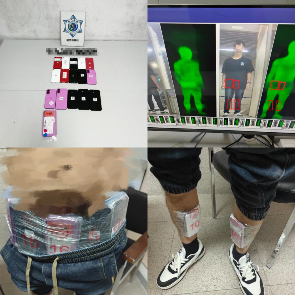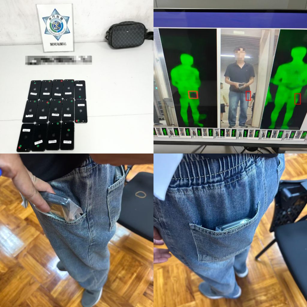 No dia 12 de Outubro, os inspectores dos SA no Posto Fronteiriço de Portas do Cerco, na área de inspecção de passageiros a sair do território, detectaram um residente do sexo masculino do Interior da China com movimentos corporais rígidos. Após verificação, foi descoberto que o homem tinha 12 artigos usados de produtos electrónicos amarrados em várias partes do corpo, na tentativa de os transportar para fora do território de forma ilícita.