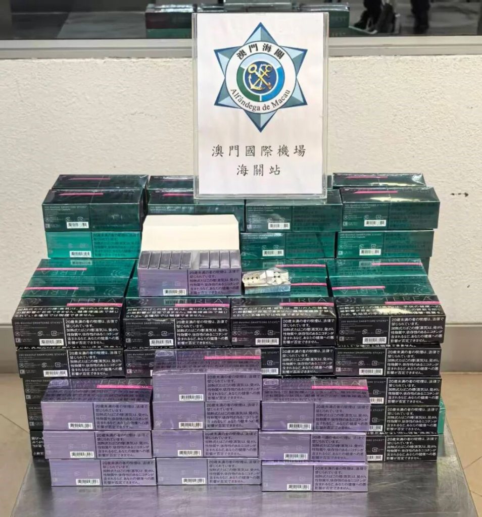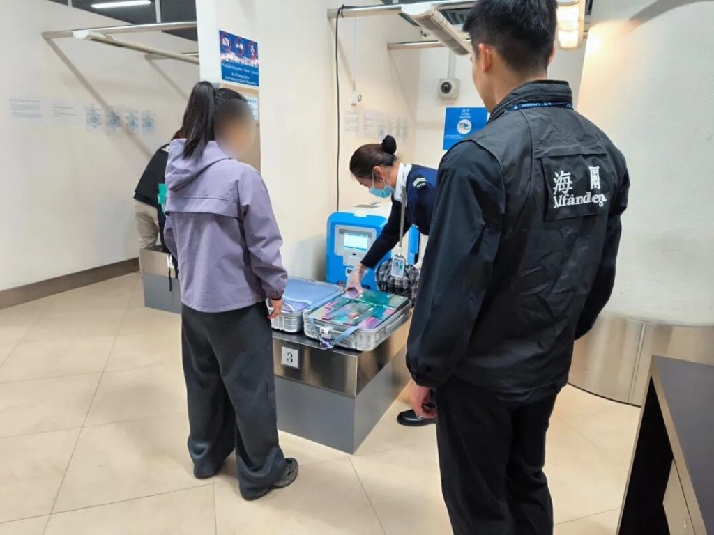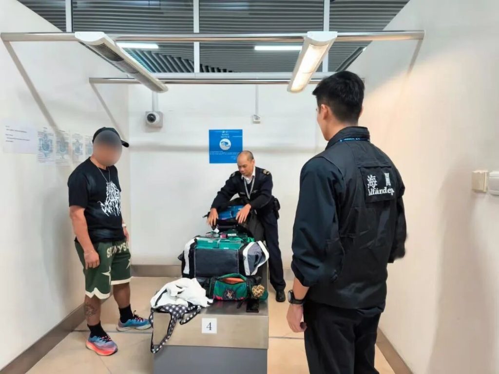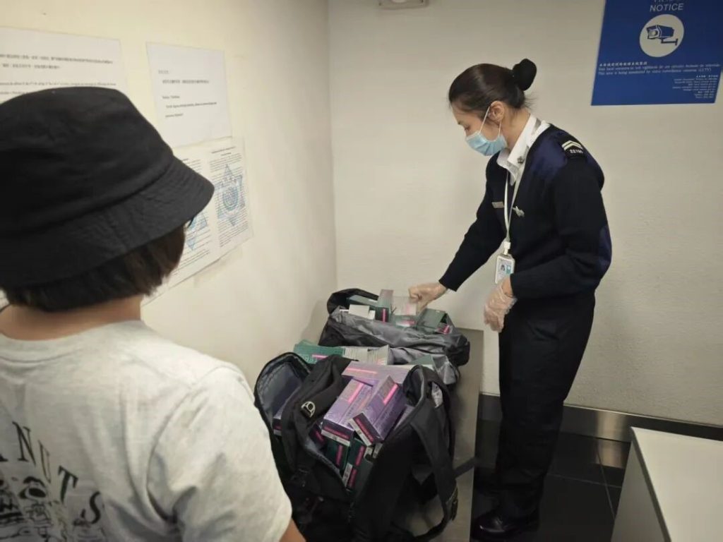在警察總局統籌下,澳門海關持續進行“雷霆2025”行動。10月22日,海關在澳門國際機場客運站接連截獲5宗攜帶大量電子煙煙彈入境個案,共檢138,000粒電子煙煙彈及10件電子煙吸食器,5人涉嫌違法被查。