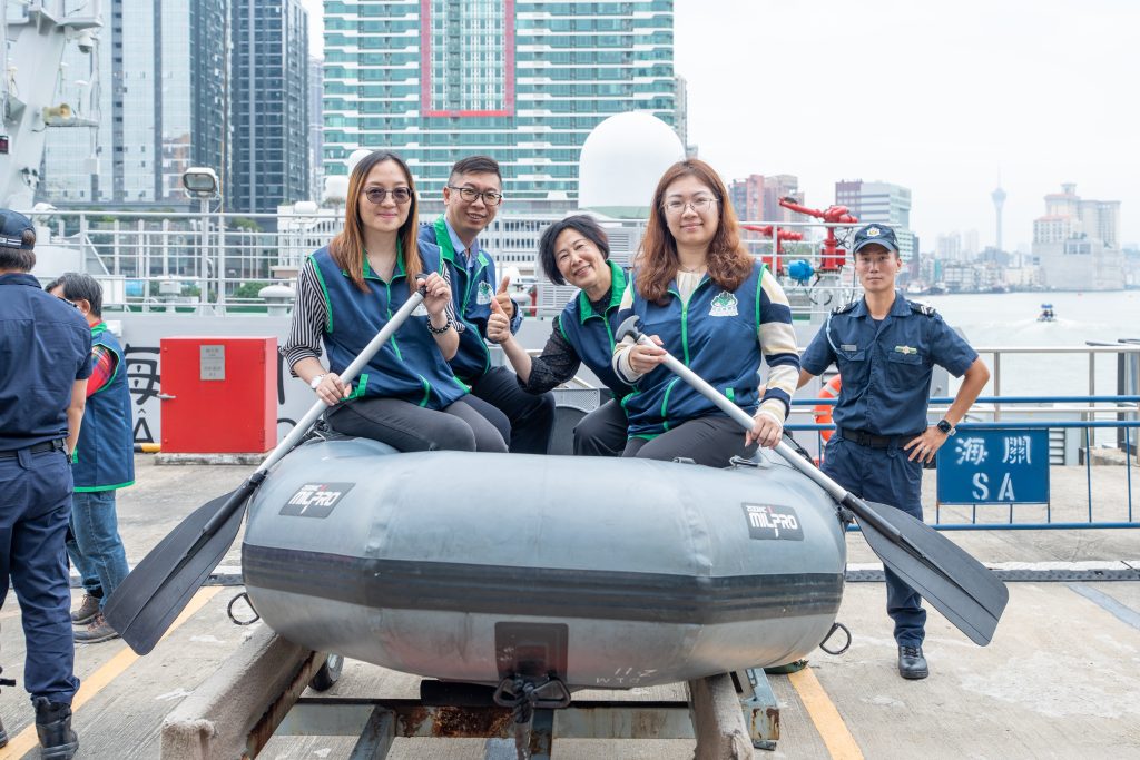 随后,潜水队人员向参观者讲解海上执勤与救援的常用装备,包括通讯和潜水器材、水上电单车及橡皮艇等,并让参观者近距离接触,加深大家对海上救援工作的认知。