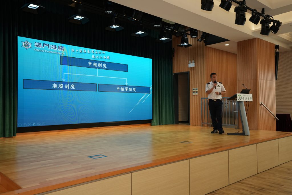 講座上,海關代表向學生介紹對外貿易法的相關知識及打擊”水客” 活動的工作成效,通過分享真實案例講解”水客” 活動常見的帶貨模式、貨物種類及偷運手法,讓學生清晰瞭解情況,提升學生守法防罪意識。