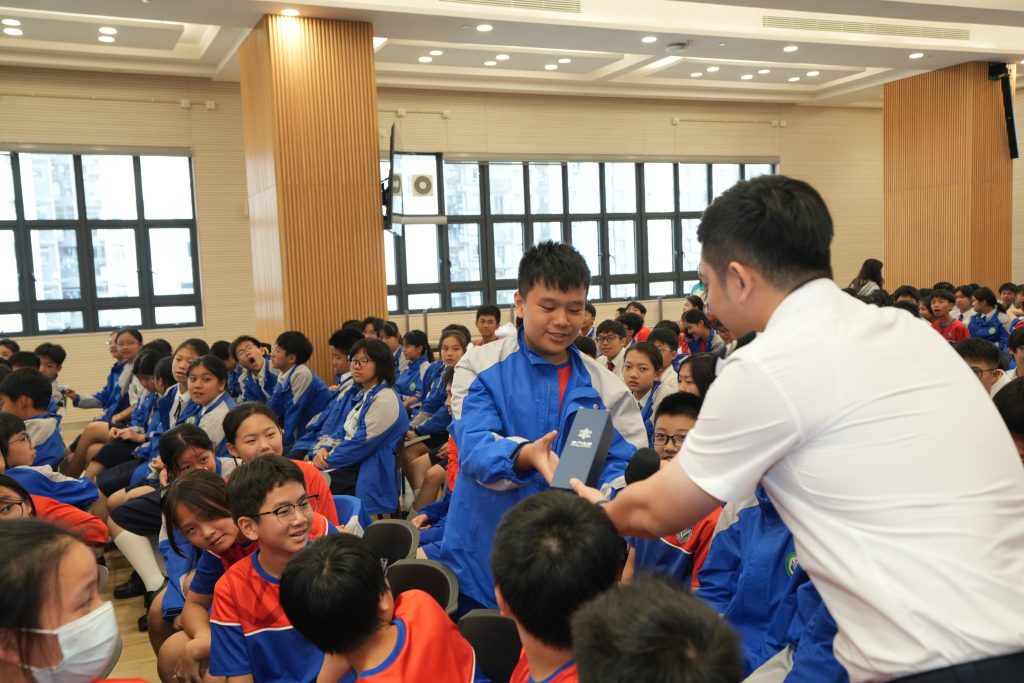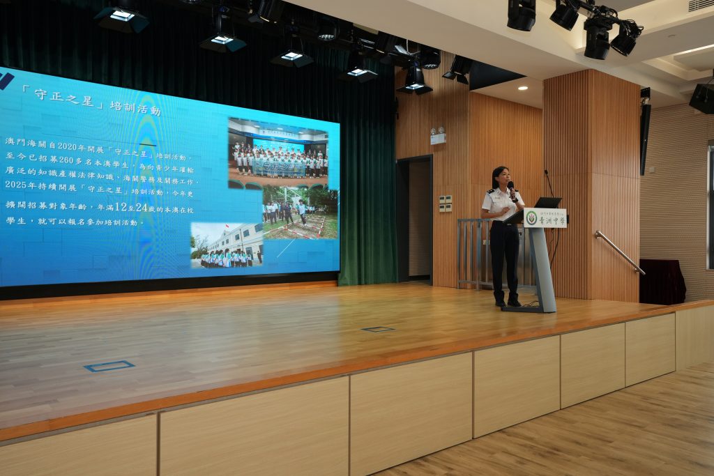 海關代表還向學生講解知識產權類型及相關法規、常見侵權行為和危害,並介紹海關在保護知識產權的執法工作,增強學生對知識產權的認識。同時,海關代表亦向學生介紹“守正之星”青少年培訓活動內容,鼓勵學生積極參與有關培訓活動,善用閒暇充實自我。