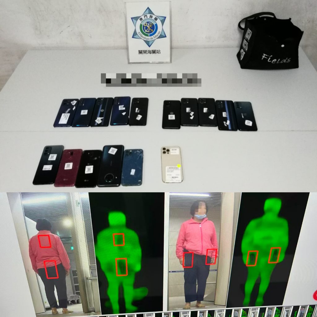 11月7日,海关人员在关闸口岸出境旅客检查区发现一名女性澳门居民步姿异常,经检查,发现该女子将16件旧电子产品藏在身体各处及随身物品内,试图将之偷运出境。
