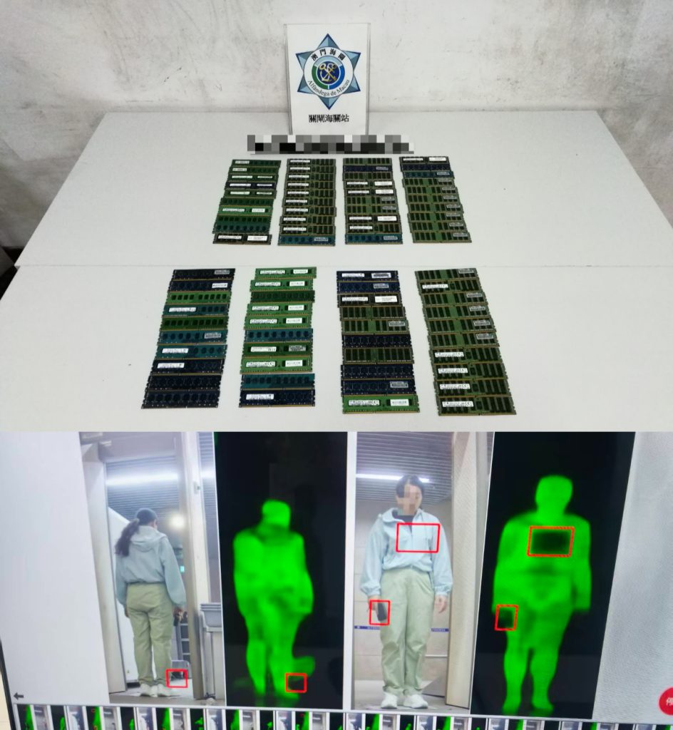 11月12日,海关人员在关闸口岸出境旅客检查区发现一名女性内地居民衣服鼓胀,经检查,发现该女子将80件旧电子产品缠于身体多处,试图将之偷运出境。