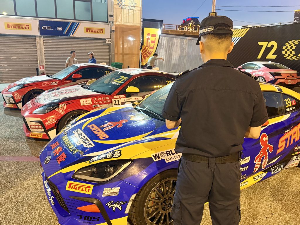 11月16日上午,保安司司长陈子劲率领警察总局局长梁文昌、澳门海关关长何浩瀚、司法警察局局长薛仲明、治安警察局局长吴锦华、消防局局长王健、澳门保安部队事务局局长刘运嫦等一众保安范畴领导,到赛车场巡视工作情况,慰问及勉励人员切实履行职责,全力以赴确保大赛车顺利举行。
