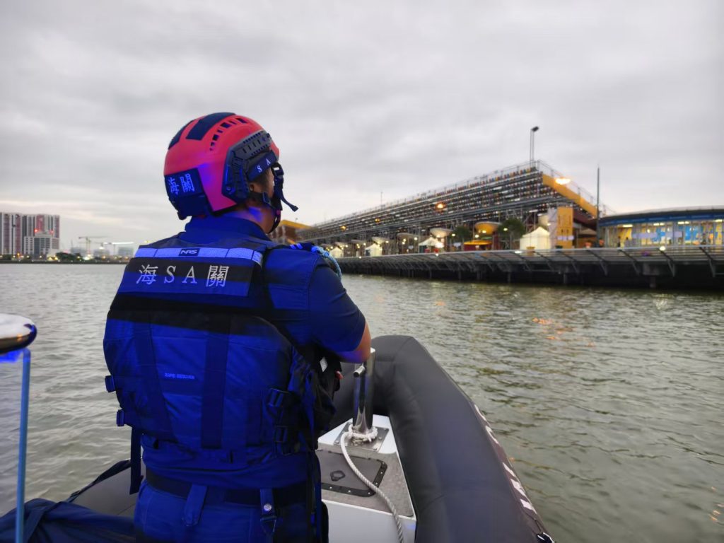 赛事举行期间,由每天的清晨开始,直至赛事结束,海关于水塘及赛道外围,派遣船艇保持戒备,加强对附近海域的巡逻工作,确保海上秩序安全及应对紧急救援工作。