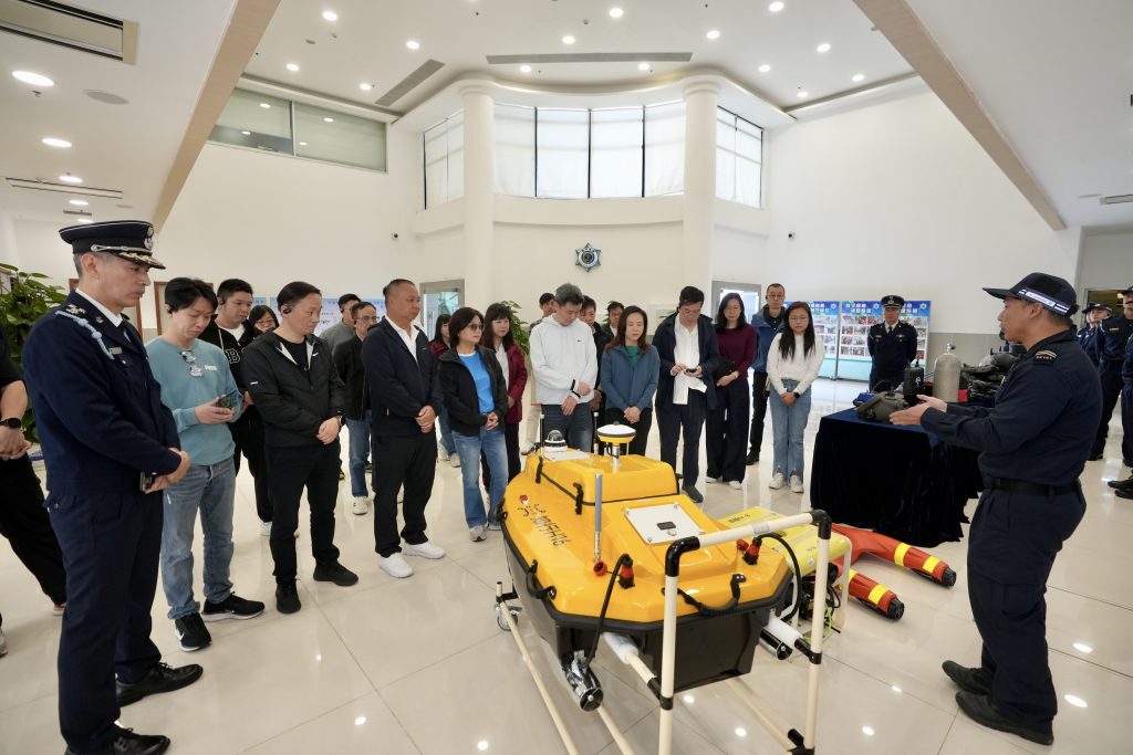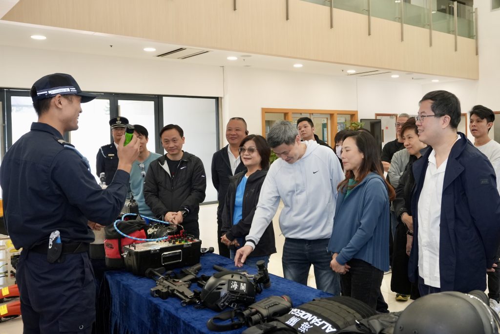 海關人員首先向參觀者講解海上執勤與救援的常用裝備,包括通訊和潛水器材、無人探測船及無人機等,並讓參觀者近距離接觸相關装備,加深大家對海上救援工作的認知。