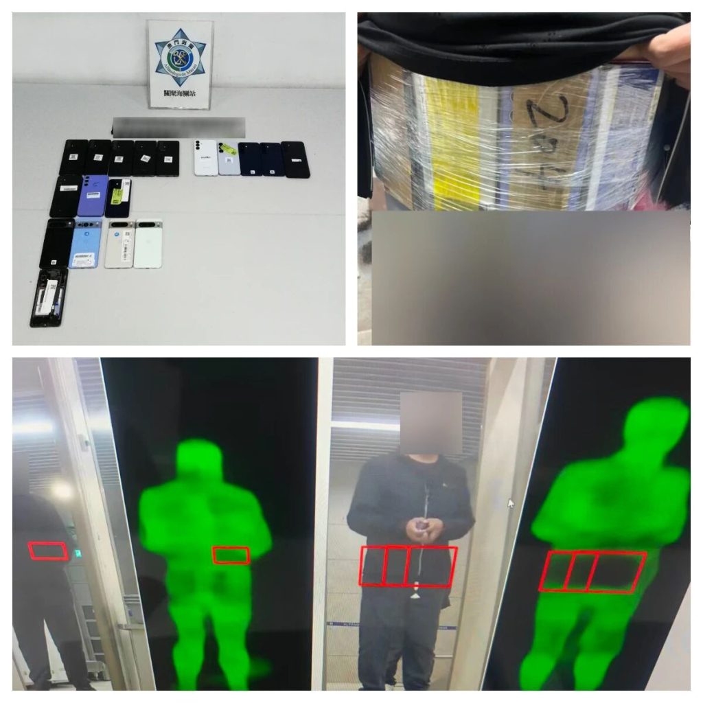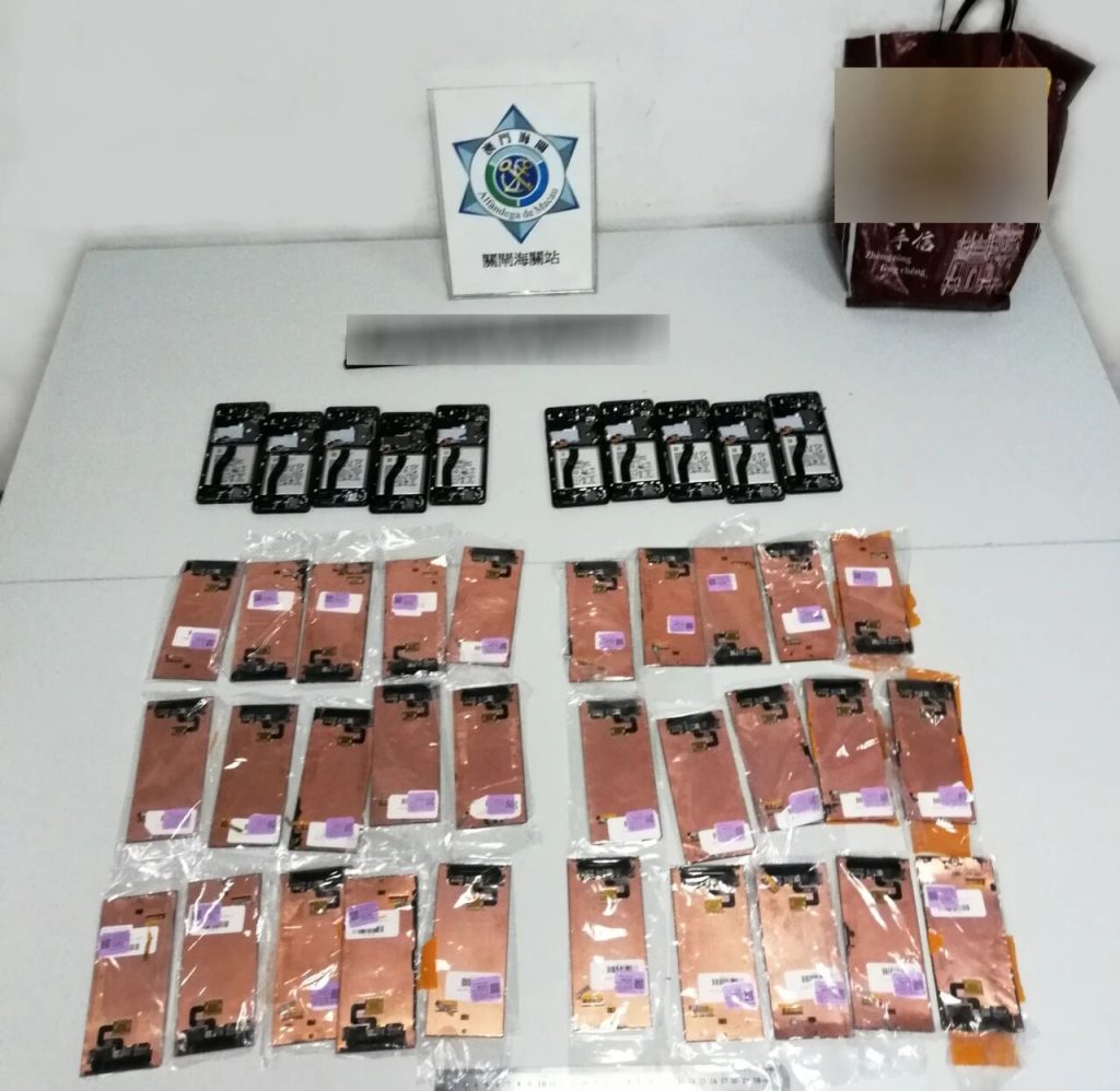 11月17日,海關人員在關閘口岸出境旅客檢查區發現一名女性澳門居民步態異常,經檢查,發現該女子將40件舊電子產品藏在衣物及隨身物品內,試圖將之偷運出境。