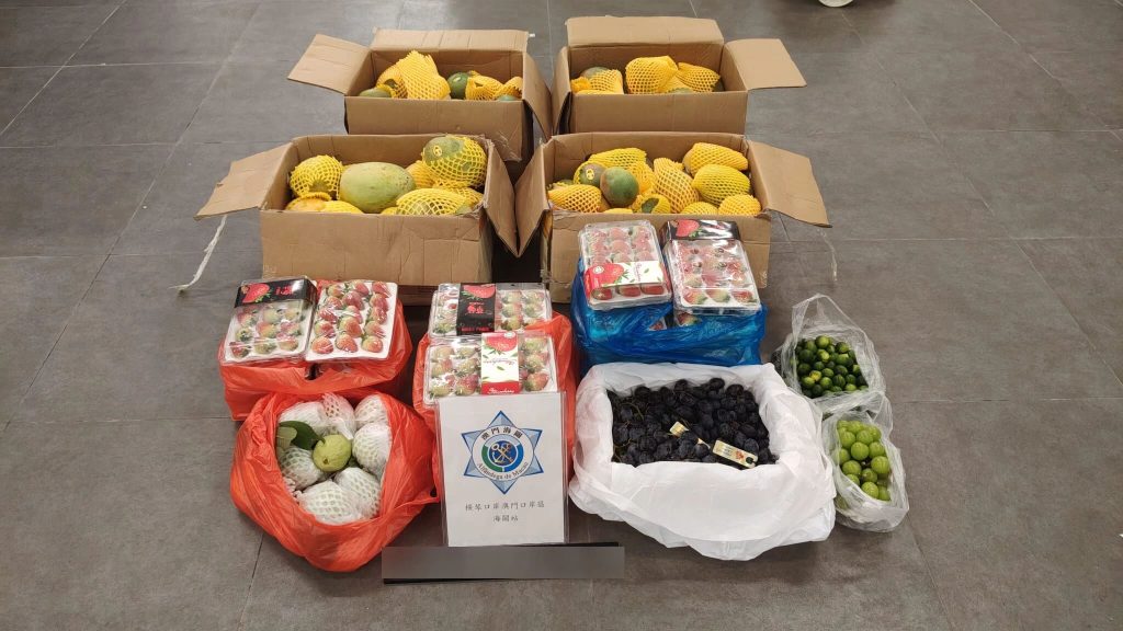 同日,海關人員透過風險管理系統的預警佈控,在橫琴口岸入境車道截查一輛跨境車輛,駕駛者為女性澳門居民。經檢查,發現該女子試圖將118.9公斤未經檢疫水果偷運入境。