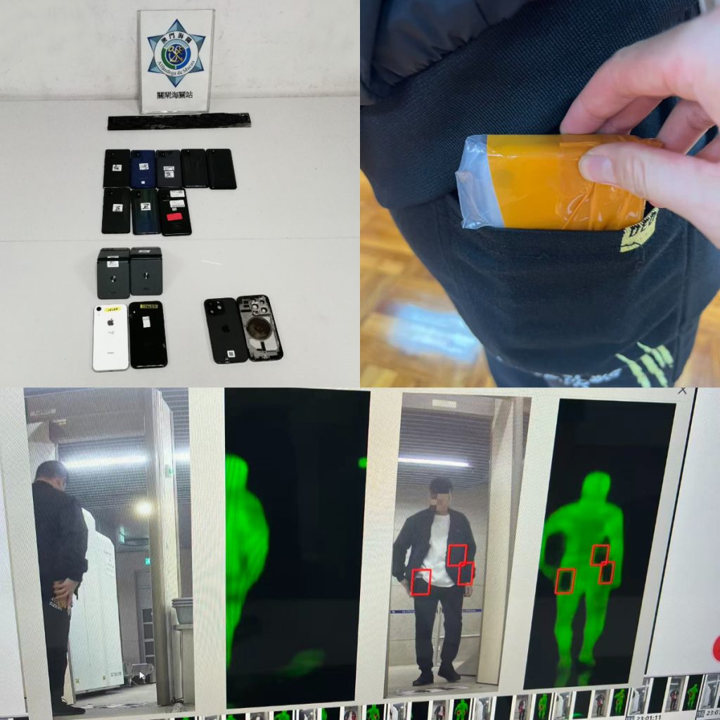 同日傍晚,海关人员在关闸口岸出境旅客检查区发现一名女性内地居民神情紧张,经检查,发现该女子将96件旧电子产品藏在随身物品内,试图将之偷运出境。
