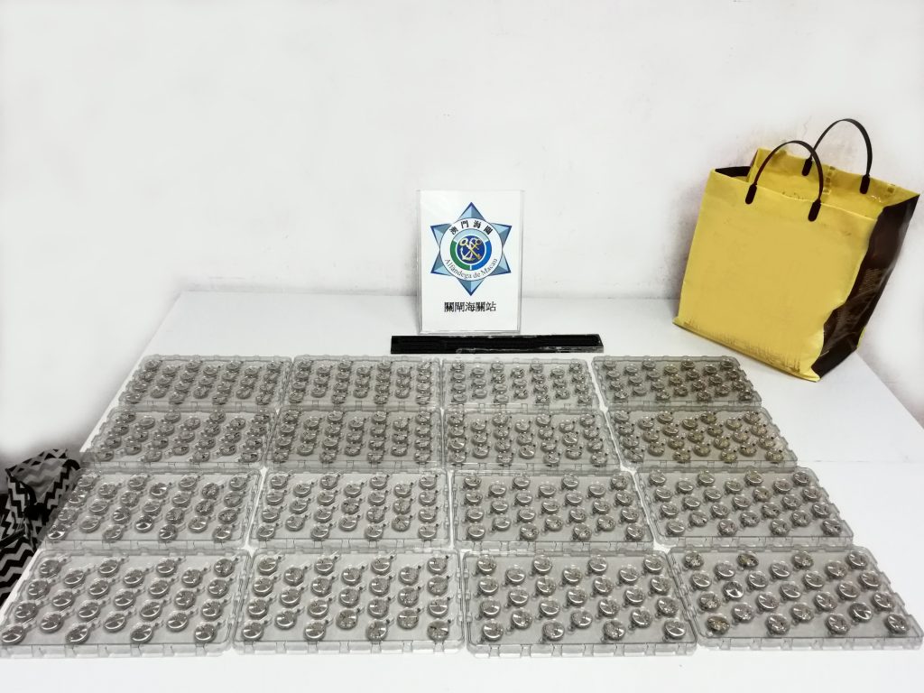 澳門海關持續打擊“水客”活動,加強口岸關檢執法工作,並利用科技手段協助,嚴厲打擊偷運物品進出本澳的不法活動。12月19日至23日,海關在港珠澳大橋澳門口岸及關閘口岸截獲5宗不法販運個案,檢獲37.6公斤未經申報和檢疫食材、400件手錶錶芯、約2,011克雪茄及188件舊電子產品。
