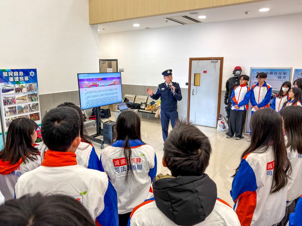 澳门海关秉持“社区警务”理念,积极拓展与社区的沟通互动渠道,并按职责范畴,联动其他政府部门、学校及团体开展各类交流活动,冀加深市民对海关工作的认知。1月3日,海关在青洲海上监察厅接待了司法警察局组织的“社区安全青年领袖”及“灭罪小先锋”一行69人,结合船队的实际运作向参观者深入介绍海关船队的海上救援及执勤情况。