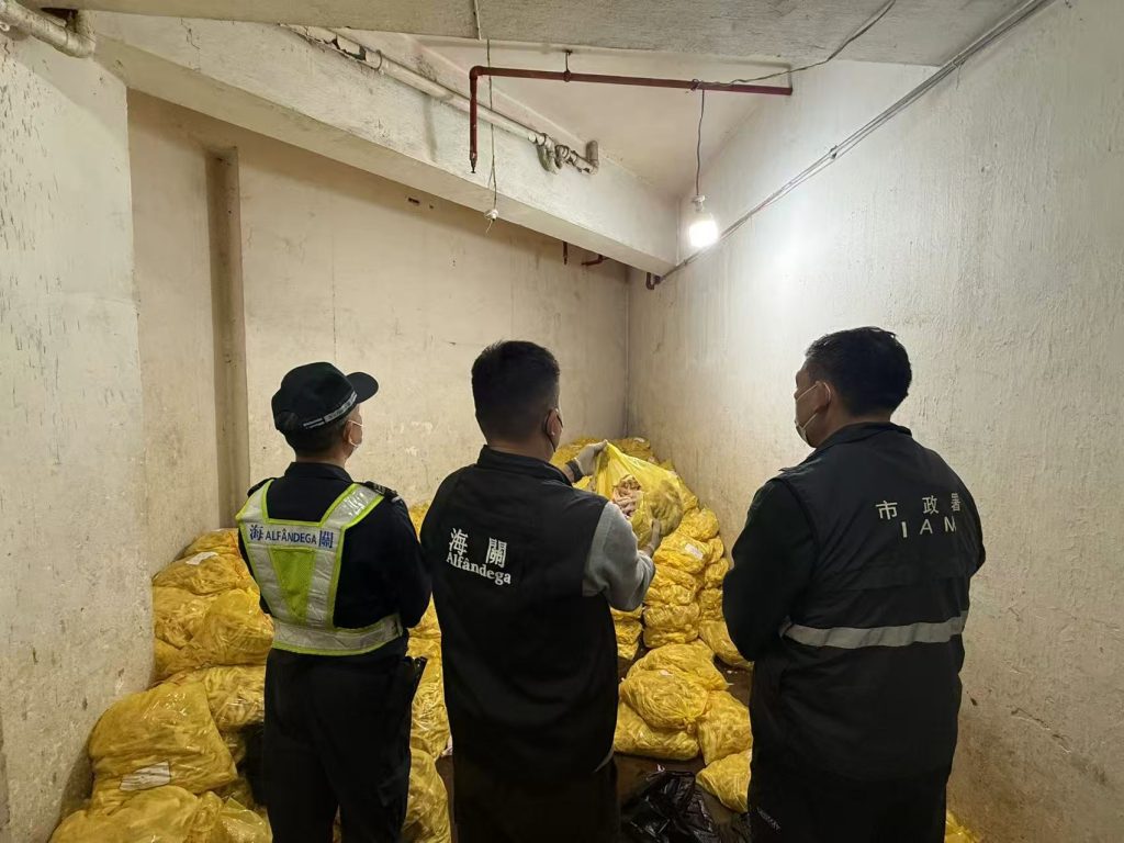 涉案現場負責人為43歲男性澳門居民,其涉嫌組織“水客”透過“螞蟻搬家”方式將貨物偷運到內地,逃避執法機關的監管。由於涉案貨物只存放在室溫下,不符合保鮮要求,現場負責人涉嫌違反第5/2013號法律《食品安全法》,此個案已交由權限部門(市政署)跟進及銷毀涉案貨物;另外,涉案單位因未具備營業許可證明文件,亦交由權限部門(財政局)跟進處理。