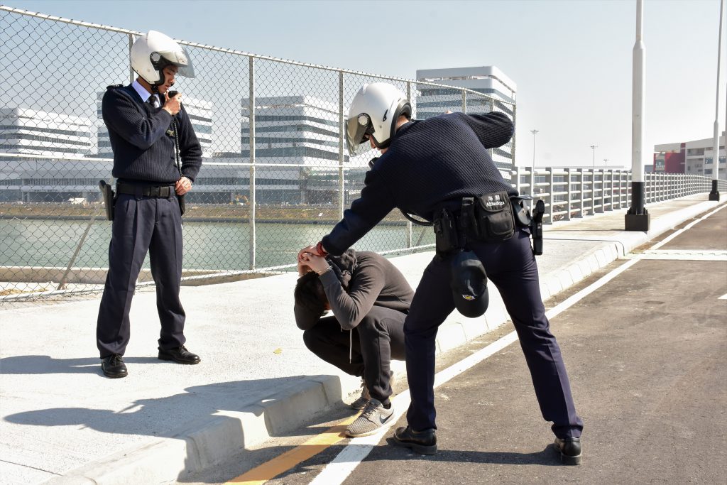 首日演練於17日上午在澳門填海A區舉行,模擬海關透過點對點聯絡機制收到內地邊防通知,有4名非法入境者從港珠澳大橋人工島偷渡進入澳門填海A區。海關接報後隨即派遣沿岸巡邏關員及巡邏快艇進行搜索及堵截,期間有非法入境者持刀反抗及趁機逃走,關員立即要求增援及通知無人機小組協助追查在逃人士下落,最終成功將所有非法入境者截獲。