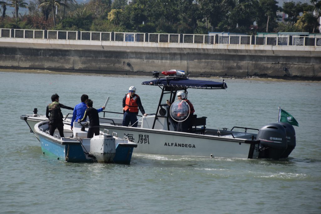 海關巡邏快艇模擬海上攔截偷渡船艇