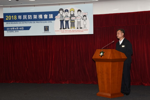 4月18日上午,警察總局局長、民防中心聯合行動指揮官馬耀權與地球物理暨氣象局、社會工作局等29個民防架構的政府部門和私營機構代表,在北安出入境事務廳大樓舉行了「2018年民防架構會議」。