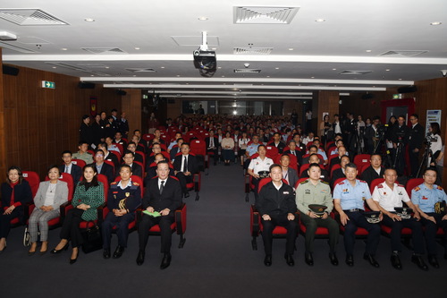 馬局長於致辭時表示,去年吹襲澳門的颱風較為頻繁,而其中“天鴿”颱風最為強烈及異常,對澳門造成了重大的破壞,市面秩序大受影響,而在隨後的搶險救災及恢復工作中,澳門特區政府得到中國人民解放軍駐澳門部隊、民間社團及義工團體等協助,使救援工作和生活秩序在短時間內得以恢復正常。隨後,特區政府亦即時成立「檢討重大災害應變機制暨跟進改善委員會」,並依據國家減災委員會專家團為本澳優化應急管理體系作出的報告及建議,確立了影響面大、與民生息息相關的十項優先開展的重點項目,而於4月12日,政府亦公佈了有關工作的階段性進展。