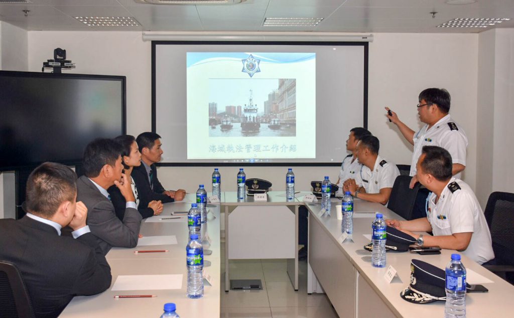 香港水警訪澳代表一行六人,包括水警總區徐偉雄副指揮官、劉經倫高級警司、蔡雅詠總督察、梁瑋賢高級督察、江漢清高級督察及葉振忠高級督察。澳門海關黃文忠代任助理關長、海上監察廳黃偉文廳長、海上巡邏處布家明處長等,帶領代表團參觀海關的巡邏船艇,以及到訪青洲海上行動指揮中心,了解澳門海域的執法工作現況。