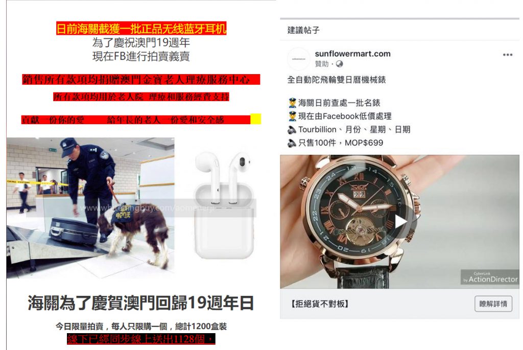 近日網上先後流傳兩則虛假消息,指海關出售扣押物品。澳門海關得悉後,一方面已即時作出澄清,提醒市民慎防受騙。同時,因事件已對海關的信用及威信造成侵犯,有關行為可能觸犯澳門《刑法典》第一百八十一條所指之『侵犯行使公共當局權力之法人』,故海關亦已向司法警察局作出檢舉,並將全力配合有關的跟進及調查工作。