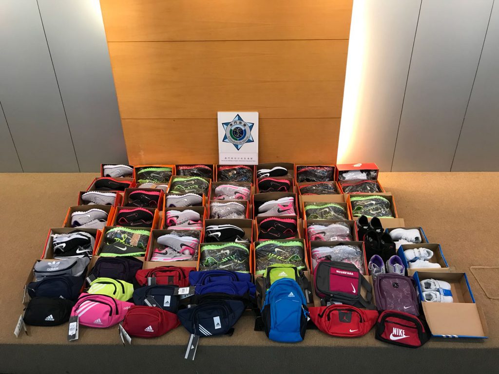 另一宗案件為懷疑假冒運動用品。海關接市民舉報,指新橋區有懷疑冒牌球鞋出售,要求海關跟進。海關經調查後鎖定目標店舖,於本月十二日採取行動,當場緝獲58件懷疑假冒商品,包括39對球鞋及19個腰包,正品價格約澳門幣2萬4千元。行動中,兩名本澳居民被帶走協助調查,包括店舖東主。有關人士涉嫌觸犯第97/99/M號法令《工業產權法律制度》第二百九十二條“將產品或物品出售、流通或隱藏”所指之犯罪,已被移送檢察院處理。