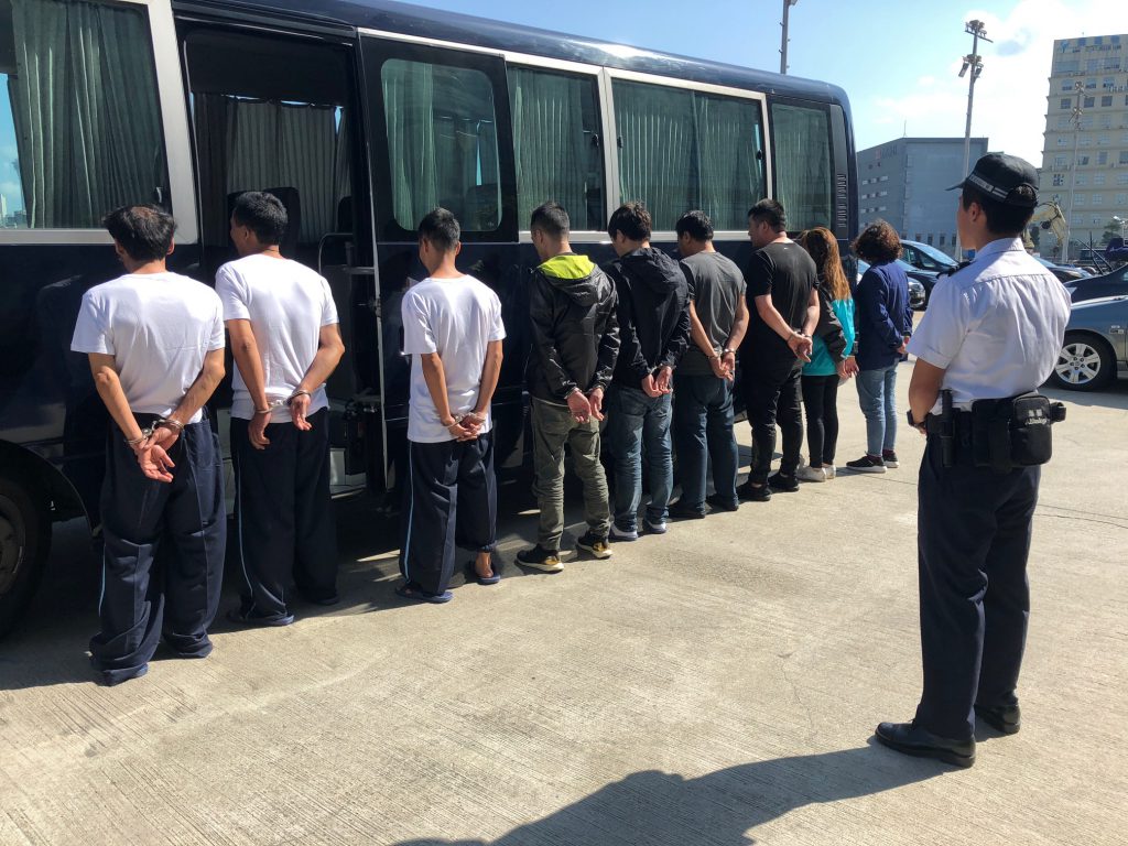 Na acção mencionada foram interceptados 8 indivíduos do interior e 1 de Hong Kong com idades entre 28 a 56 anos, 4 dos quais envolvidos na saída clandestina e 2 na entrada clandestina. Quanto aos três aliciadores, indivíduos do sexo masculino, eram suspeitos de infringir os artigos 14º (Auxílio) e 15º (Acolhimento) da Lei n.o 6/2004, foram enviados para o tratamento do órgão judicial.