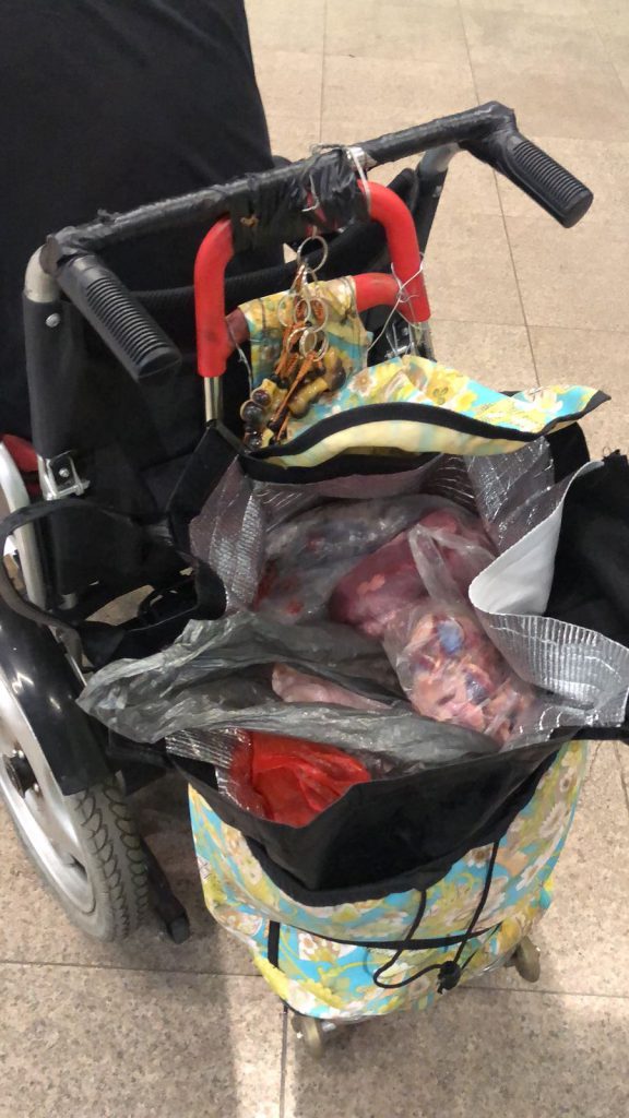O infractor entrou de cadeira de rodas para contrabandear alimentos com carrinho.