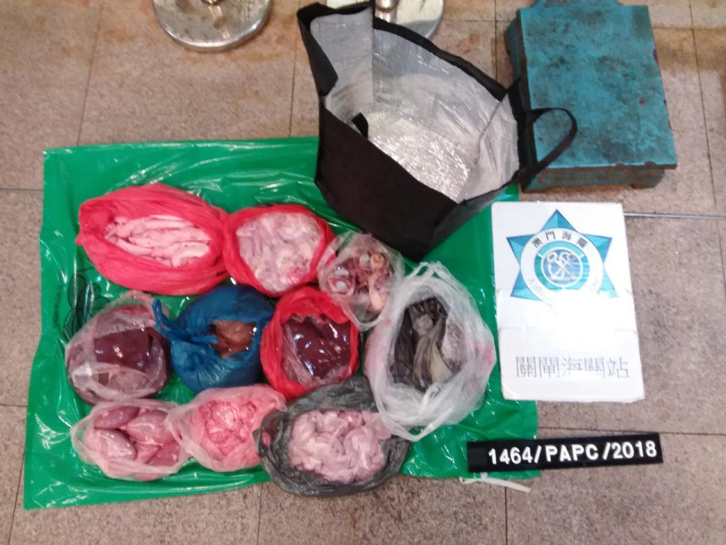 No dia 13 de Junho, quando um homem de cadeira de rodas eléctrica estava a entrar em Macau pelo Posto Fronteiriço das Portas de Cerco, os verificadores alfandegários descobriram o seu comportamento estranho e mandaram-o para inspecção. Após a inspecção, foram encontradas dentro do seu carrinho carne de porco, vísceras de boi e carne de frango não declaradas e sem ser inspeccionadas, totalizando 17,5 quilos.
