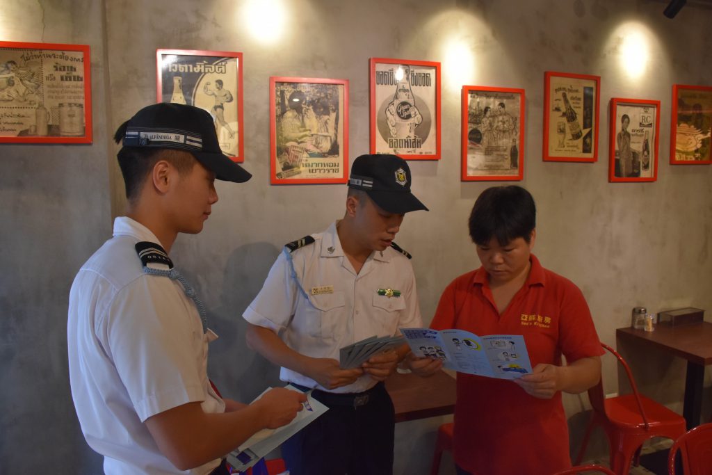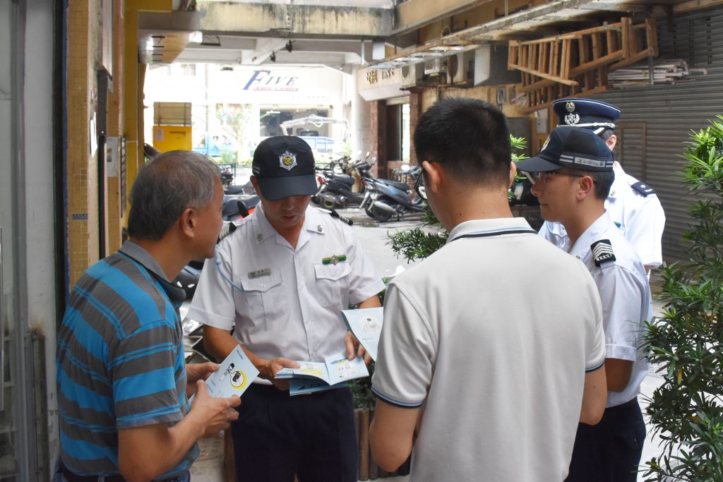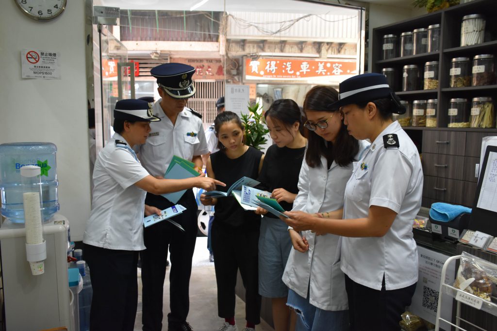 海关人员向妈阁商户派发宣传品