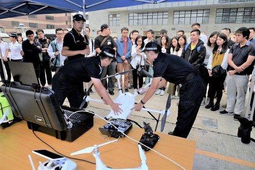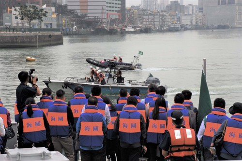 在交流活動環節後,海關安排人員向出席青年介紹最新購置的無人機裝備,瞭解其在險要地勢下如何發揮監察及救援等作用;海關船隊亦在青洲對開海面安排出席者觀看一場反偷渡演練,派出快艇及水上電單車模擬追截及拯救偷渡人士。黃有力其後更帶領一眾青年,登上A級海關輪出海,進一步了解各種新型設備如何應用於實際工作,加深對海域管理工作的了解。