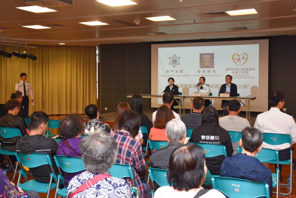 宣傳講座於下環活動中心舉行,出席講座的坊會及社團包括下環區坊眾互助會、澳門明愛泉仁樂家庭綜合服務中心、漁民互助會、陳族聯誼會及仁協之友聯誼會,合共約80名坊會、社團代表及市民出席。警察總局代表先向市民講解民防架構、總體疏散撤離計劃內容、撤離計劃進行時的高點以及低窪地區警報系統的運作;海關代表講解撤離計劃中所負責區域的情況、4月下旬民防演習的內容和工作安排;社工局代表講解避險中心的各項措施及物資安排情況。
