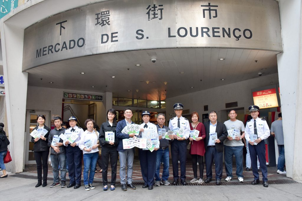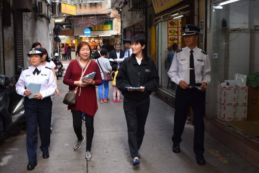 警察總局、海關及社工局等人員向商戶派發宣傳單張