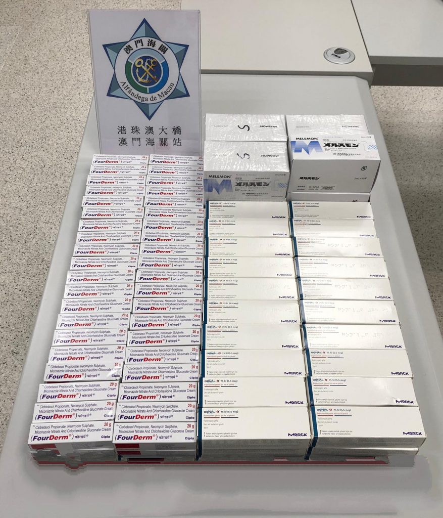 本月15日下午,海關人員透過X光機檢查入境旅客的行李時,發現一名旅客的行李箱內收藏的物品有可疑,經檢查後,關員發現行李箱內藏有128盒藥物,後經衛生局人員證實上述為須具備准照方可入口的藥物。次日下午,一輛港澳兩地牌私家車經港珠澳大橋口岸入境澳門,關員在私家車的尾箱內發現496支美容產品,其中部份美容產品是須預先取得准照才可入口。海關查獲的兩批貨物價值折合約15,000澳門元。