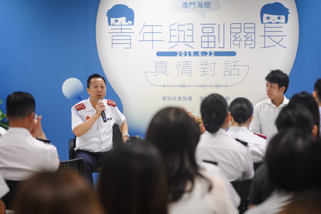 为促进与青年的交流互动,聆听年青人对政府工作的意见,配合特区政府的青年政策,澳门海关于本月22日下午举办“青年与副关长真情对话”活动。是次活动以“紧贴社会发展,建设智慧海关”为主题,来自澳门中华新青年协会、鄂澳青年交流促进会、澳门妇联青年协会的50名青年,与海关代副关长黄文忠一同探讨海关在智慧警务方面的发展。活动加深了青年人对澳门海关工作的认识。
