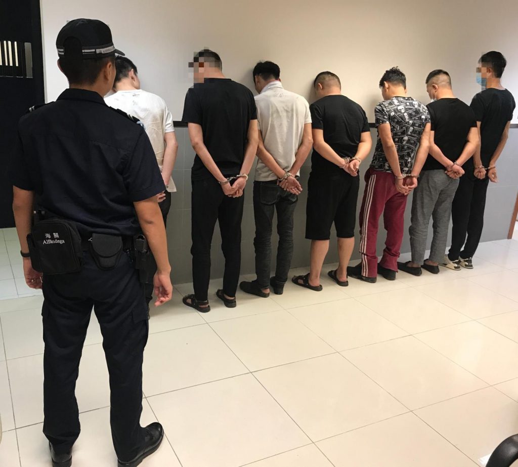 被捕的9人包括8男1女,均來自內地,年齡介乎26至49歲。調查過程中,關員在其中一名男子身上搜出多張偽造入境申報表,該名男子涉嫌觸犯第6/2004號法律第18條『偽造文件』罪;另,案中一名女子亦涉嫌觸犯同一法律第21條『非法再入境』罪,二人已被移送檢察院偵辦,其餘七名非法入境者則移交治安警察局處理。