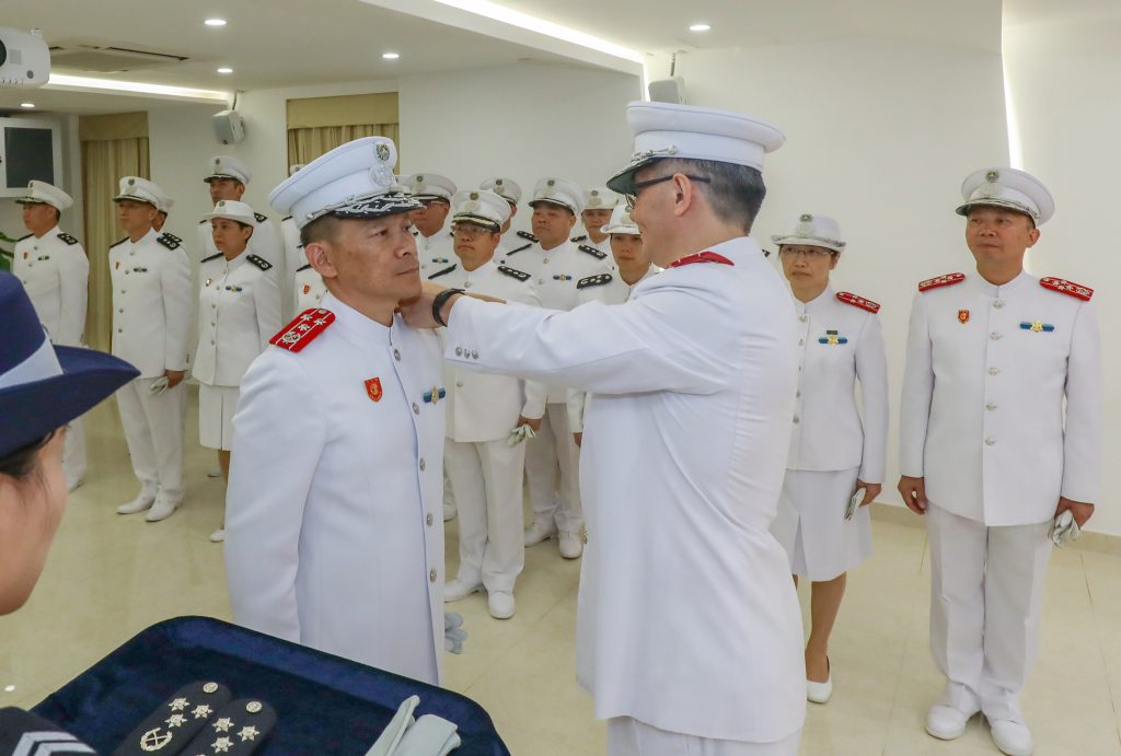 黃有力關長為新任助理關長黃偉文戴上肩章