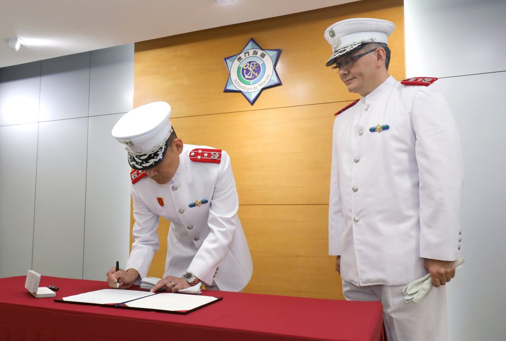 澳門海關今日(18日)下午於海關總部大樓舉行副海關關長和助理海關關長就職儀式,在海關領導和各部門主管的見證下,關務總長黃文忠、關務總長黃偉文進行宣誓及簽署就職狀,分別就任副海關關長、助理海關關長。