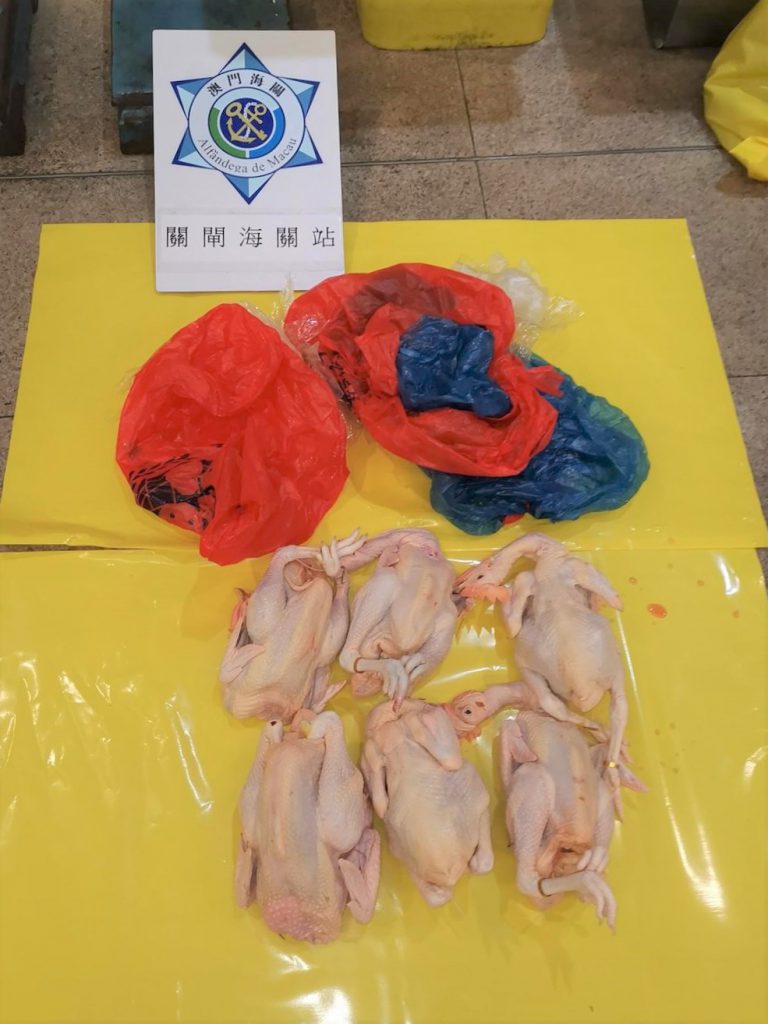 Os Serviços de Alfândega reforçam, sucessivamente, o trabalho de verificação ao viajante na entrada. No Posto Fronteiriço das Portas do Cerco foi interceptado hoje um caso de transporte para Macau de alimentos de carne fresca não inspeccionada, sendo o indivíduo envolvido residente local, os SA instauraram já a acusação contra o mesmo nos termos legais.