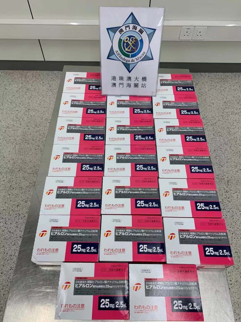 本月24日中午,海关关员于上述海关站透过X光机检查入境旅客的行李时,发现其中一名旅客的行李箱内藏有可疑物品,经检查在箱内搜出共20盒关节注射液药物,由卫生局人员证实上述为须具备准照方可入口的药物。涉案男子为香港居民,年约70岁,报称药物购自日本,供美容院使用,货物价值港币9千元。海关已根据《对外贸易法》的相关规定,对涉案人作出起诉,一经判罚,可科处澳门币5千元至10万元罚款,而所有被查获货物,亦会宣告归澳门特别行政区所有。