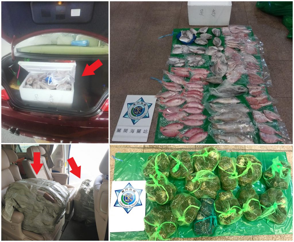 海關截獲粵澳兩地牌私家車載有未經申報水產